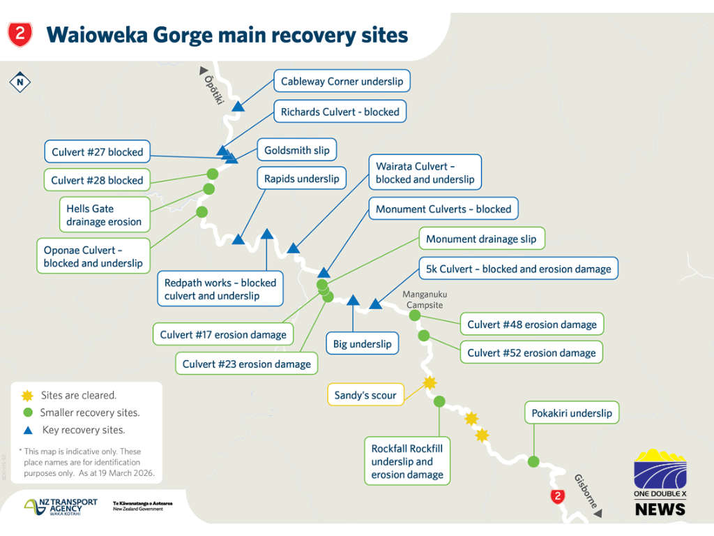 State Highway 2 through the Waioweka Gorge will be open 24/7 under stop/go traffic management for the Easter period.