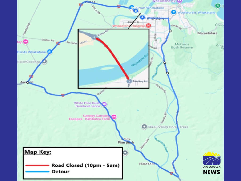 Traffic heading out of Whakatāne should detour via Valley Road and Tāneatua Road, onto SH2 to Pekatahi Bridge, then straight to SH30 Awakeri, and vice versa.